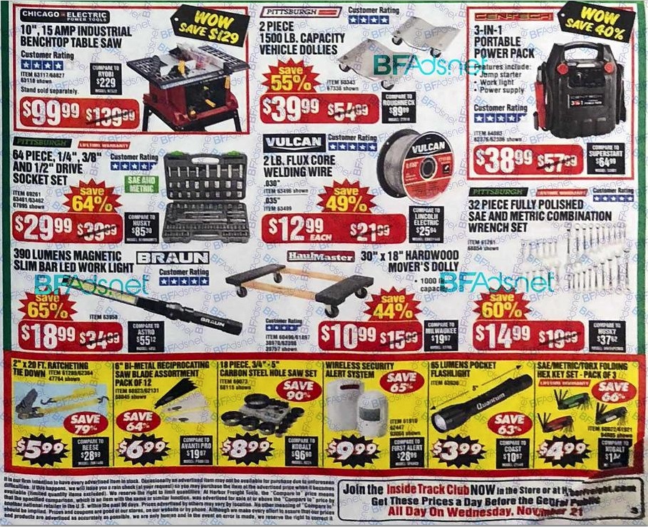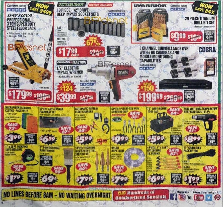 The Harbor Freight Black Friday ad for 2018 has leaked! Below we have the scans for this years ad. I will be doing a full breakdown of every deal in this ad when we get closer to Black Friday so be sure to SUBSCRIBE to my Youtube channel so you don’t miss out!