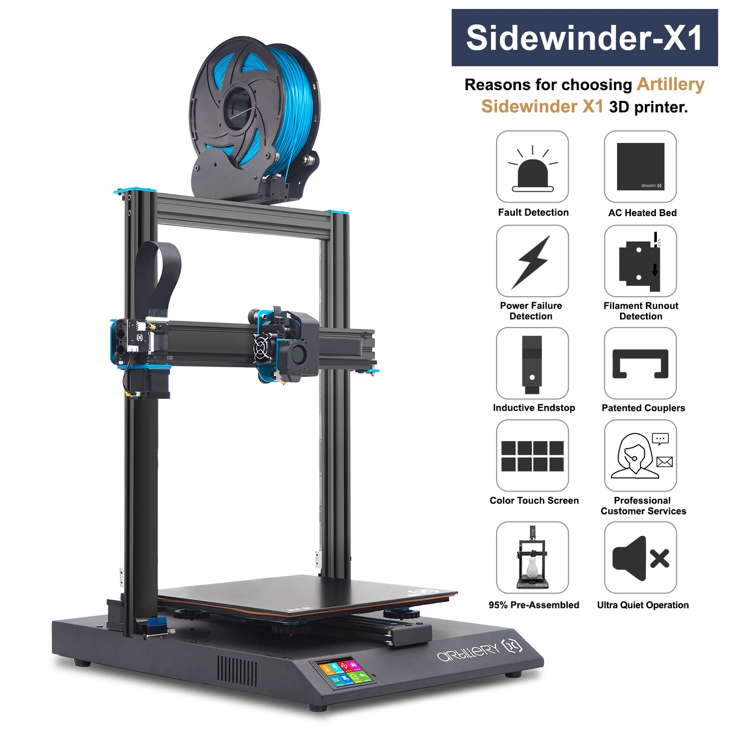 Faster speed, the max print speed is 150 mm/s. Large build volume 300 * 300 * 400mm / 11.81 * 11.81 * 15.75in.Exclusive ultra-quiet stepper driver, low noise and high performance. Support filament run-out detection and recovery, power loss detection and recovery.Adopting rapid heating AC heat bed, direct drive extruder for better flexible filament support, and synchronized dual Z system.Exclusive heat bed protection design. New lattice glass as 3D printer platform, extremely flat surface, superb adhesion, a breeze to release the printed objects, fast and steady heated curve, tested and durable flat.Using flat cables, convenient and clean, not easy to be frayed. Support printing soft materials well with strong stability, such as TPU, TPE.Color touchscreen, reset key set, easy to operate. All-in-one machine, 95% assembled, simple to install, 2 minutes to complete the installation, saving installation time.$309 with promo code SWX1X2OFF10.