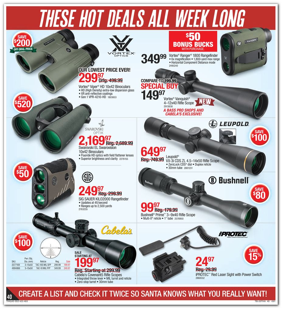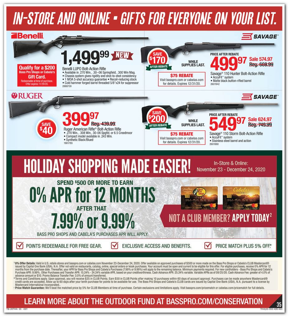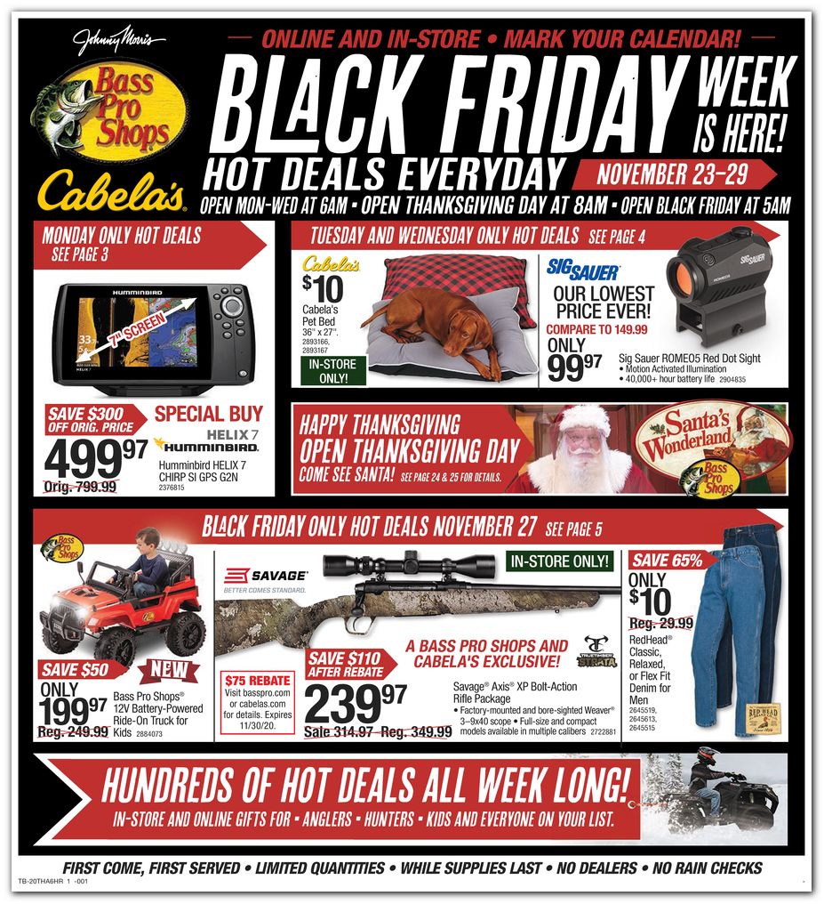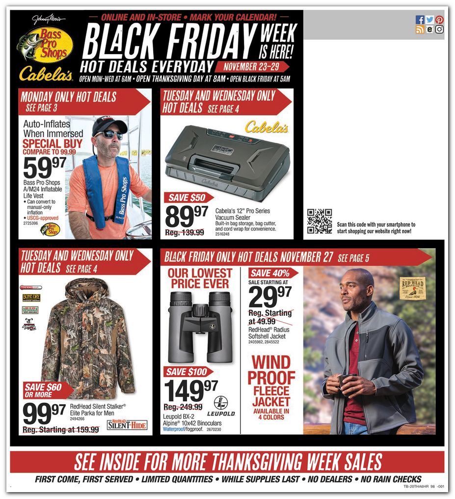 Like many retailers this year Bass Pro Shops is not having a traditional Black Friday sale. Below are scans of the ads that have been released so far. The ad states the prices are valid through 11/22. If anything new comes out it will be added to the bottom of the scans on this page.
