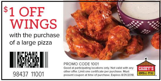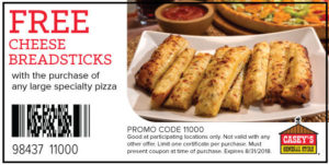 Casey’s General Store Coupons – Expiring 8/31/18 PJAugust 20, 2018January 14, 2026 Deals No CommentsFREE Cheese Breadsticks with the purchase of any large specialty pizza $1 Off Wings with the purchase of a large pizza ← Sears: Craftsman 24 pc. Reach & Access Add-On Set – $20.69!Amazon: Dremel 4000-6/50 120-Volt Variable-Speed Rotary Tool with 50 Accessories – Save 30%! → Leave a Reply Cancel replyYour email address will not be published. Required fields are marked *Comment *Name * Email * Website Save my name, email, and website in this browser for the next time I comment. Δ