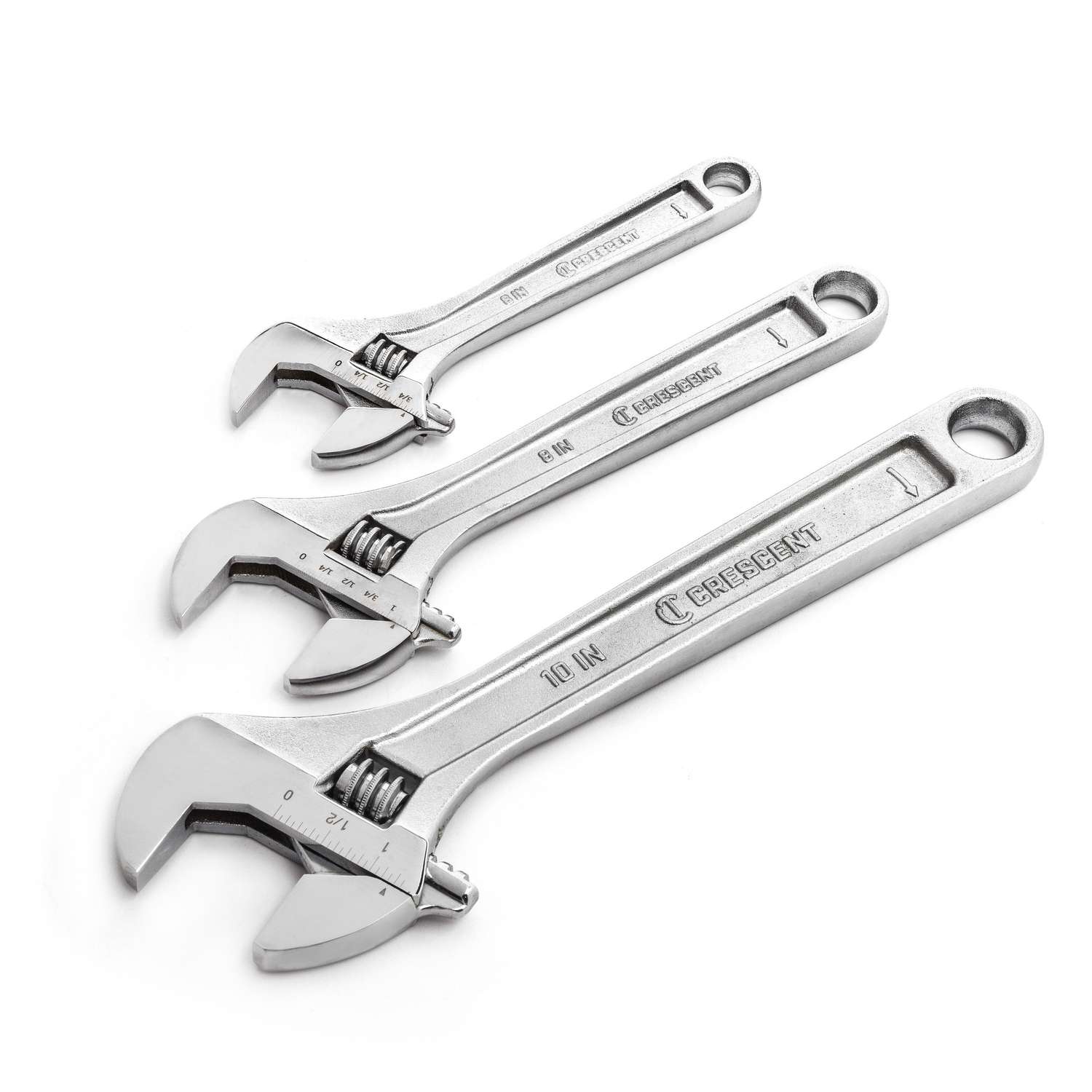 Polished head and satin finished handleThe original adjustable wrench, made by the world-famous Crescent brandLaser etched scale in both SAE Standard and Metric sizes allows easy identificationLarger knurl for easy adjustment ensures a tight jaw fitHex jaw design reduces slippage by gripping fasteners tightlyLarge capacity 15/16″, 24mm jaw fits a wide range of fastener sizesWider handle improves comfort and reduces fatigueHeat-treated forged alloy steel for toughness and durabilityWas: $59.99