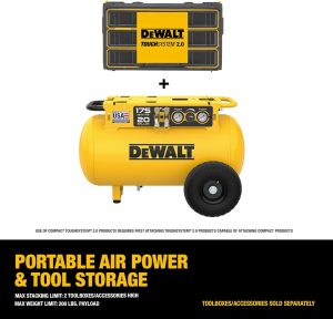 Our Take: This is a smart, albeit niche, release from DeWalt. For finish carpenters or trim crews, this is a game-changer. You can leave the noisy compressor outside or in the trailer, run a single hose to this tank inside the house, and have a silent, massive buffer of air right next to where you are working. Plus, the fact that it serves as a base for your other ToughSystem boxes makes it a highly efficient use of floor space in a van or truck.