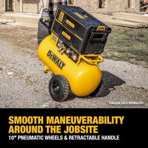 - Easy jobsite mobility with retractable handle and10" pneumatic wheels