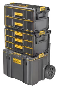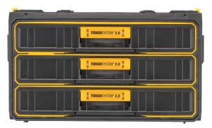 The DEWALT ToughSystem 3-Drawer Unit is also a customizable storage solution. The patented auto-connect side latches allow you to connect the unit to other ToughSystem units, providing even more storage space. And if you need to use the unit on its own, the one-touch release capability quickly disconnects it from other units. Additionally, this toolbox is compatible with all ToughSystem shelves and trolleys, making it a versatile storage solution for any workspace.