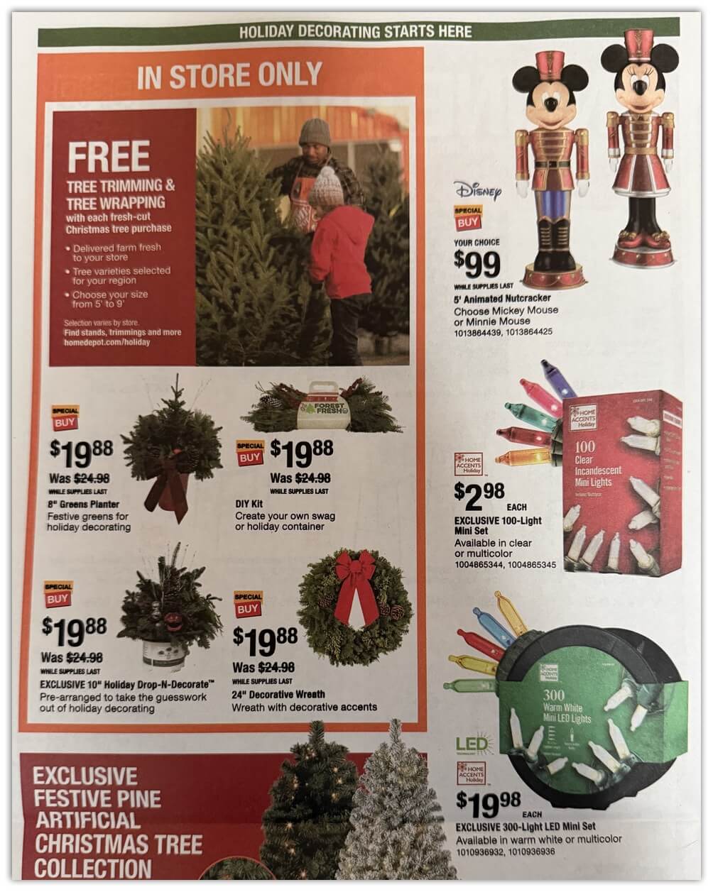 | Home Accents | 6.5′ LED Pre-Lit Festive Pine Tree (Natural or Flocked) | $49.98+ | Check Amazon » |