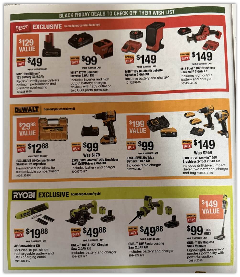 The wait is over! The Home Depot Black Friday 2025 ad has officially dropped, and this year’s sale features massive discounts on professional power tools, major appliances, and holiday decor. Whether you are looking for DeWALT, Milwaukee, Ryobi, Makita, or RIDGID, this year’s flyer is packed with “Buy One Get One” promotions and doorbusters up to 70% OFF.