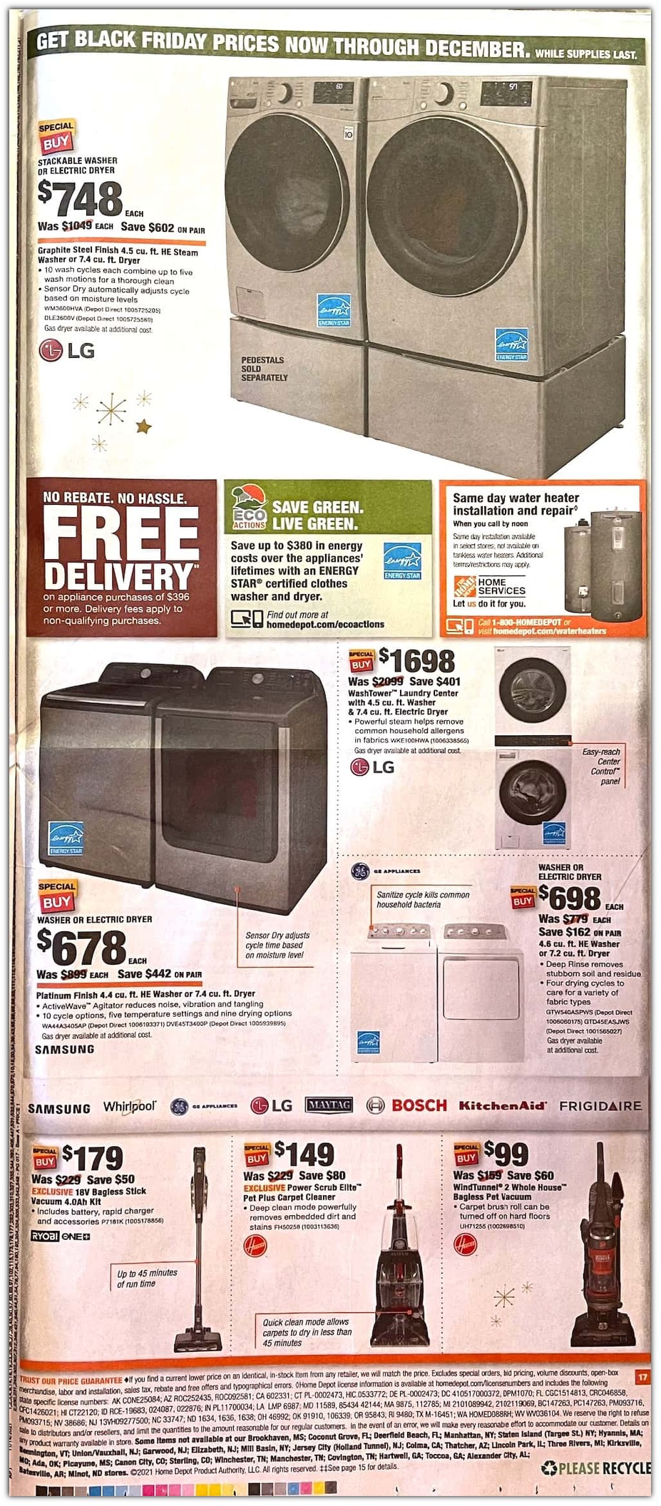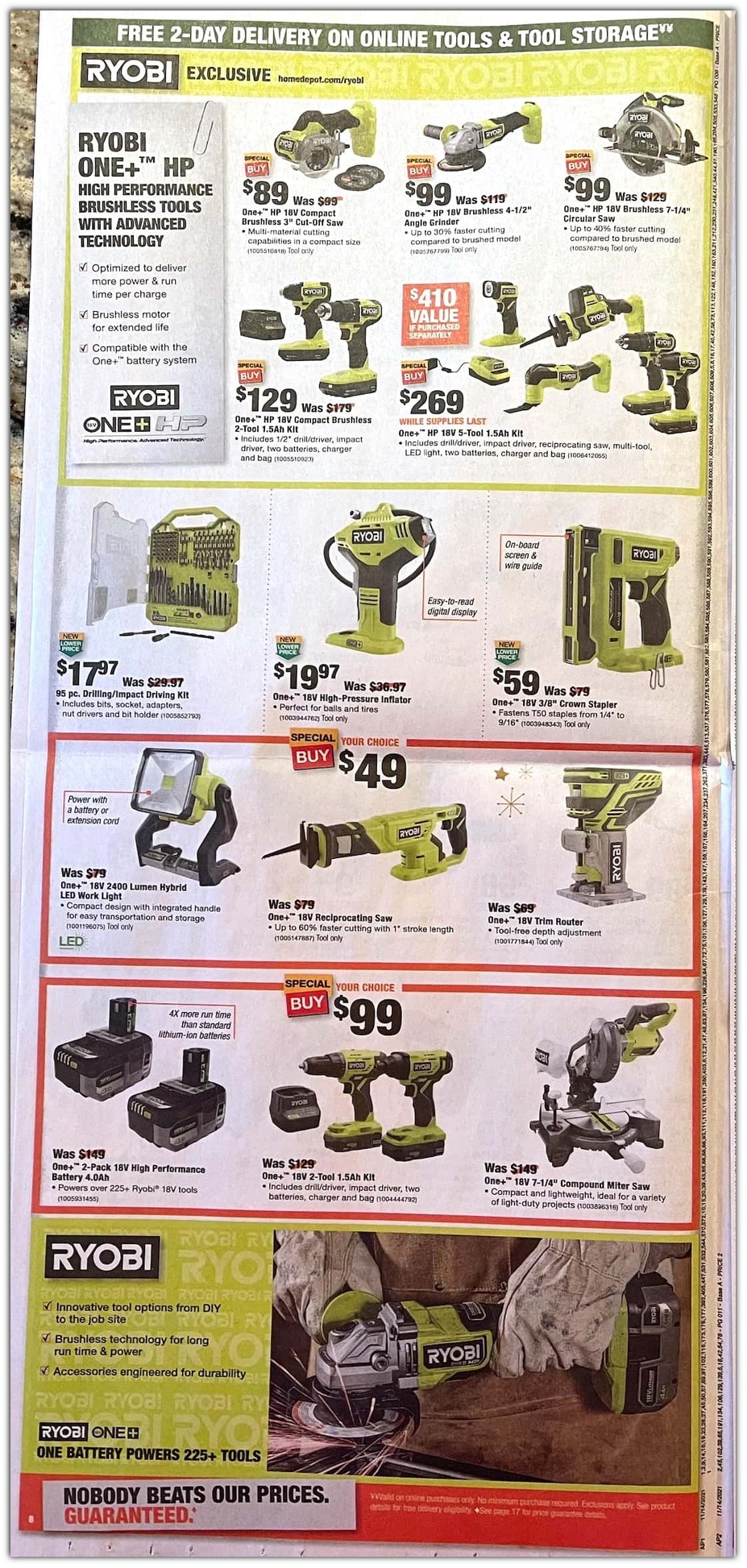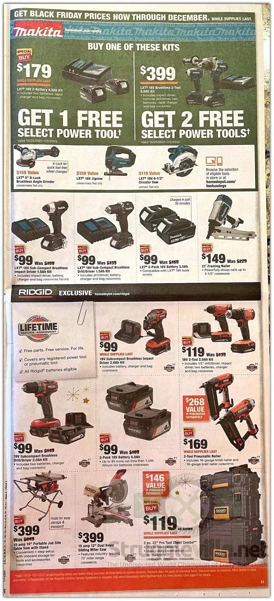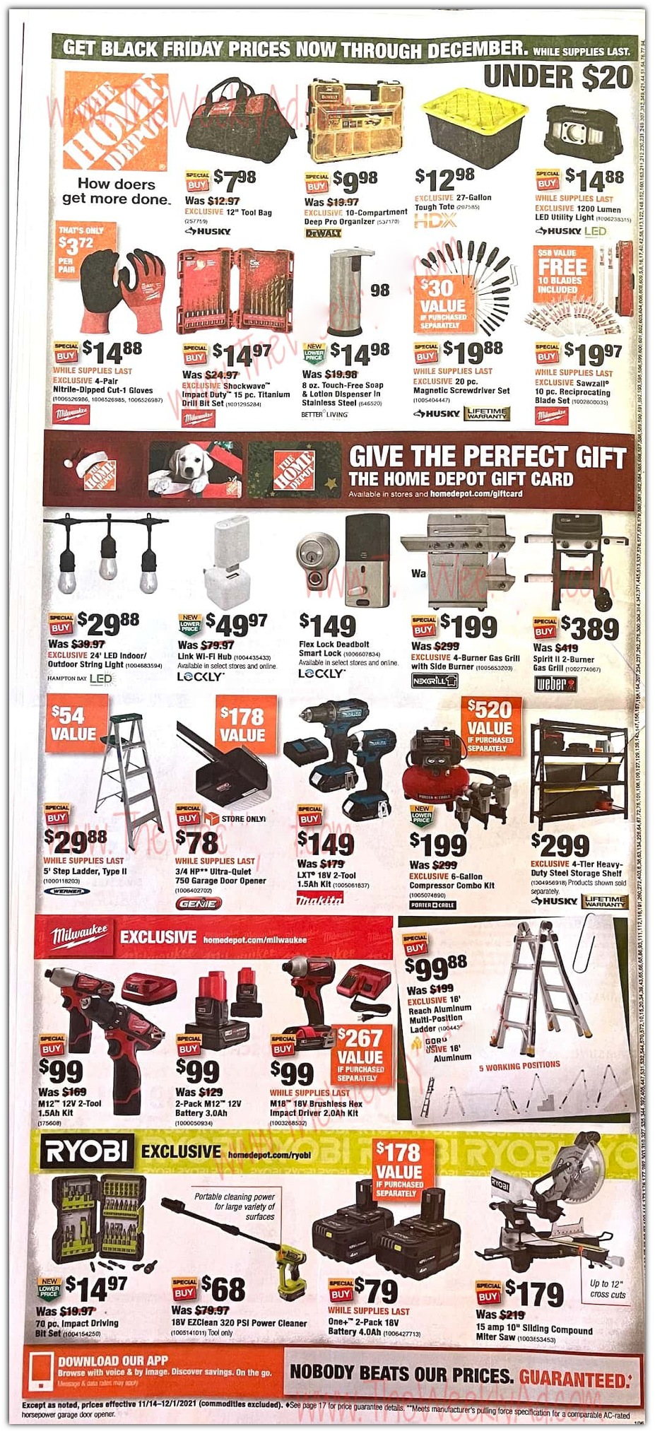 The official Home Depot Black Friday ad for 2021 has “leaked”! According to the ad the sale does not begin until 11/14 but I have seen some items on their website are already showing the discounted price. The sale expires on 12/1. CHECK OUT THIS VIDEO for a breakdown of the deals, many of them started a few weeks ago.