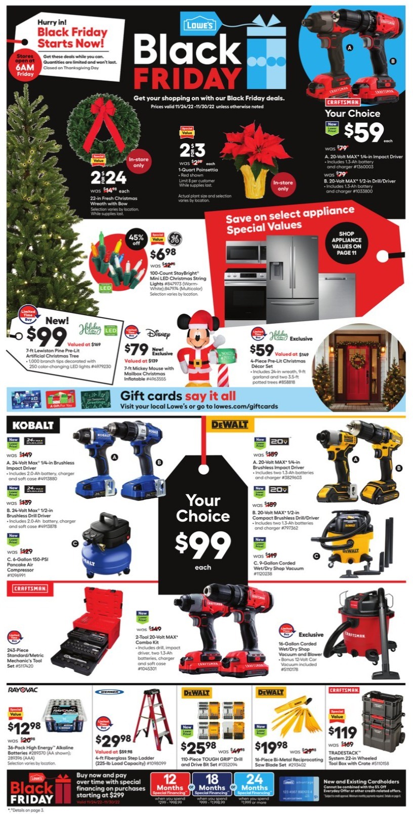 Lowes has released their Black Friday ad for 2022! This ad starts on 11/24 and goes through 11/30. You may notice some of these prices are already available on Lowe’s website!