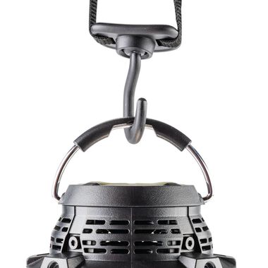 Convenience features include a foldable metal hang hook and handle with a rubber grip that provide easy transportation or hanging. The lantern guard also functions as an FM antenna. The tool features water and dust resistant construction for improved operation in outdoor conditions. It weighs only 3.4 lbs. with battery (battery not included) and measures only 11-3/8″ long for easy pack-in and pack-out.