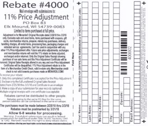 Menards 11% Price Adjustment Rebate #4000 – Purchases 2/25/18-3/3/18