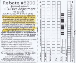 If you are a Menards shopper then you probably have already heard of their 11% off sales. During these sales you will receive a Menards rebate worth 11% of your total purchase. What you might not know is that their is also an 11% Price Adjustment rebate. With this rebate you can get 11% off on purchases you made up to 2 weeks before the 11% sale started. Menards does not put this rebate on their website or make it available with the other rebates in the store. The only way to get this rebate is to ask for it at the customer service desk. Or print our copy below.