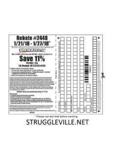 This week Menards has brought back their 11% rebate. You can click on the image below to print the rebate form if you are in need of one. We will make a separate post when we get one of the 11% Price Adjustment rebates. CLICK HERE to see if we have created that post yet.