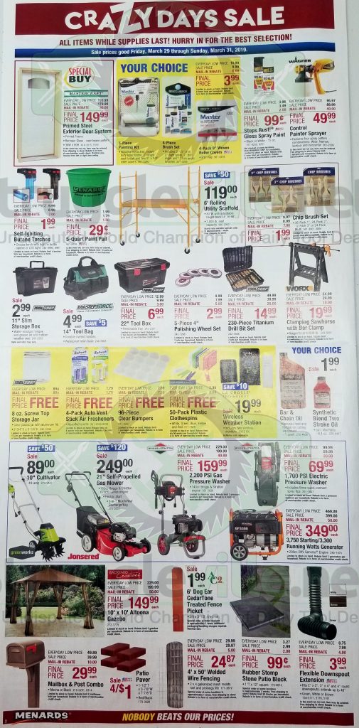 Menards CRAZY DAYS SALE! 3/29/19 – 3/31/19 PJMarch 26, 2019March 27, 2019 Menards No Comments[wysija_form id=”8″] ← Amazon: 90 LED Solar Motion Sensor Security Lights Outdoor with 270º Wide Angle, 3 Optional Modes Wireless Waterproof Solar Powered By Garden JoyAmazon: Gerber Gator Folding Knife, Serrated Edge, Clip Point [06079] → Leave a Reply Cancel replyYour email address will not be published. Required fields are marked *Comment *Name * Email * Website Save my name, email, and website in this browser for the next time I comment. Δ