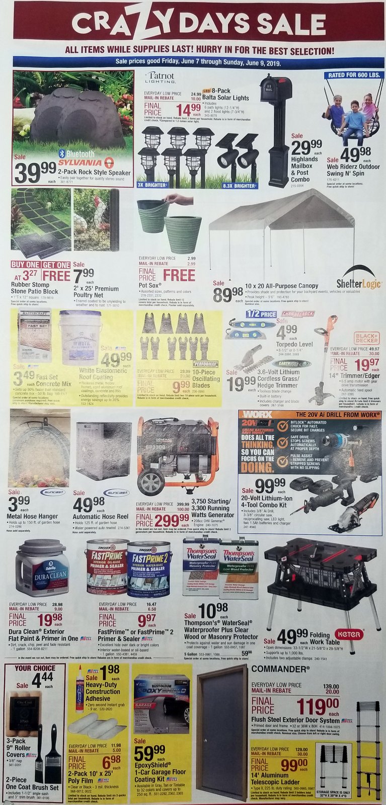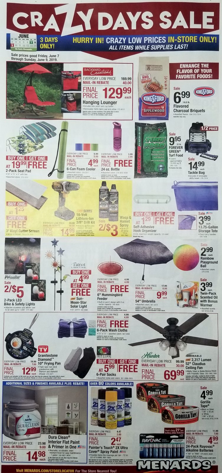 This weekend Menards is having another one of their CRAZY DAYS sales! The sale starts on Friday June 7th and goes through Sunday June 9th. Many of the best deals during CRAZY DAYS sales will sell out so be sure to get to Menards ASAP! Below are scans of all 4 pages of the CRAZY DAYS sale ad.