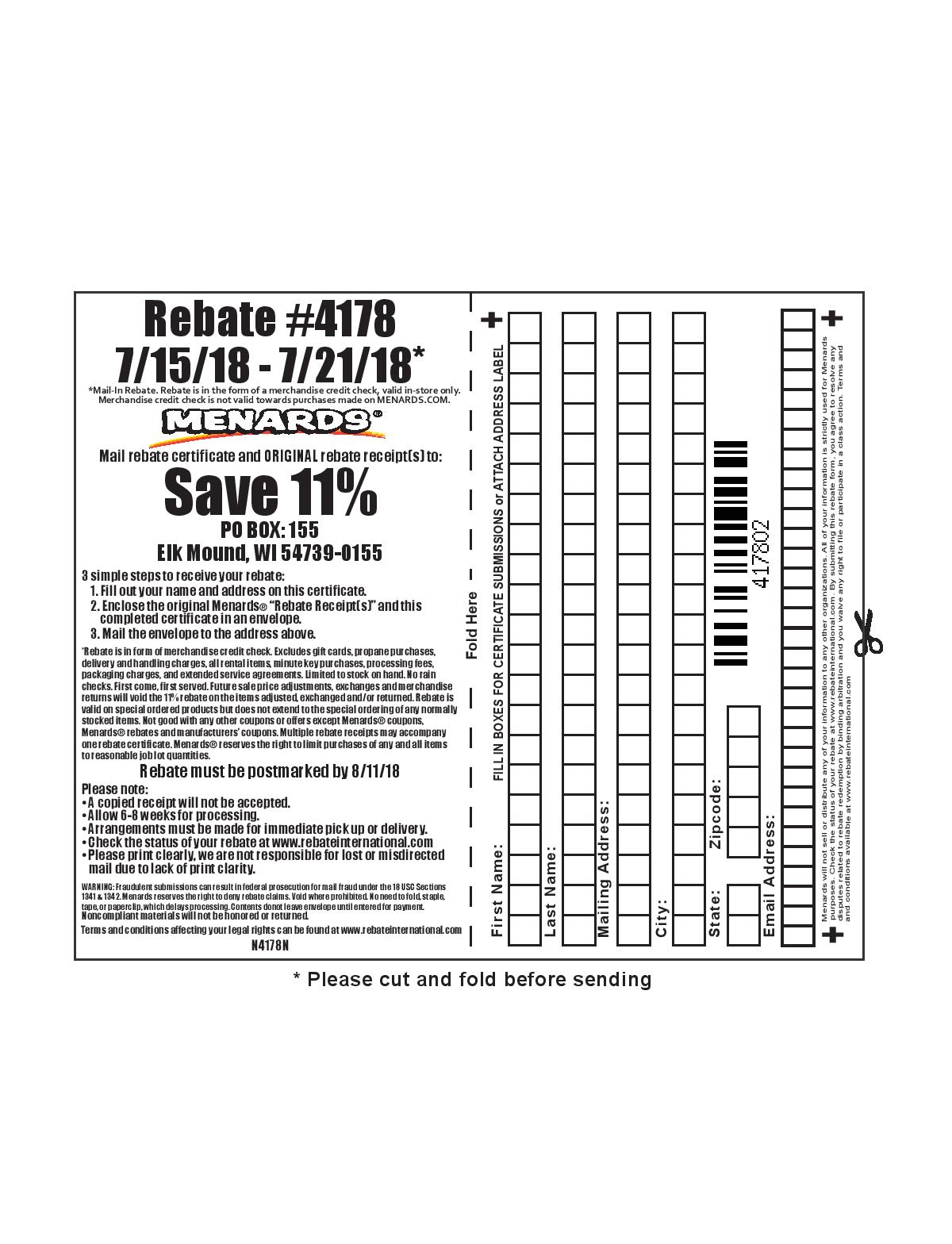 2. Enclose the original Menards ® “Rebate Receipt(s)” and this completed certificate in an envelope.