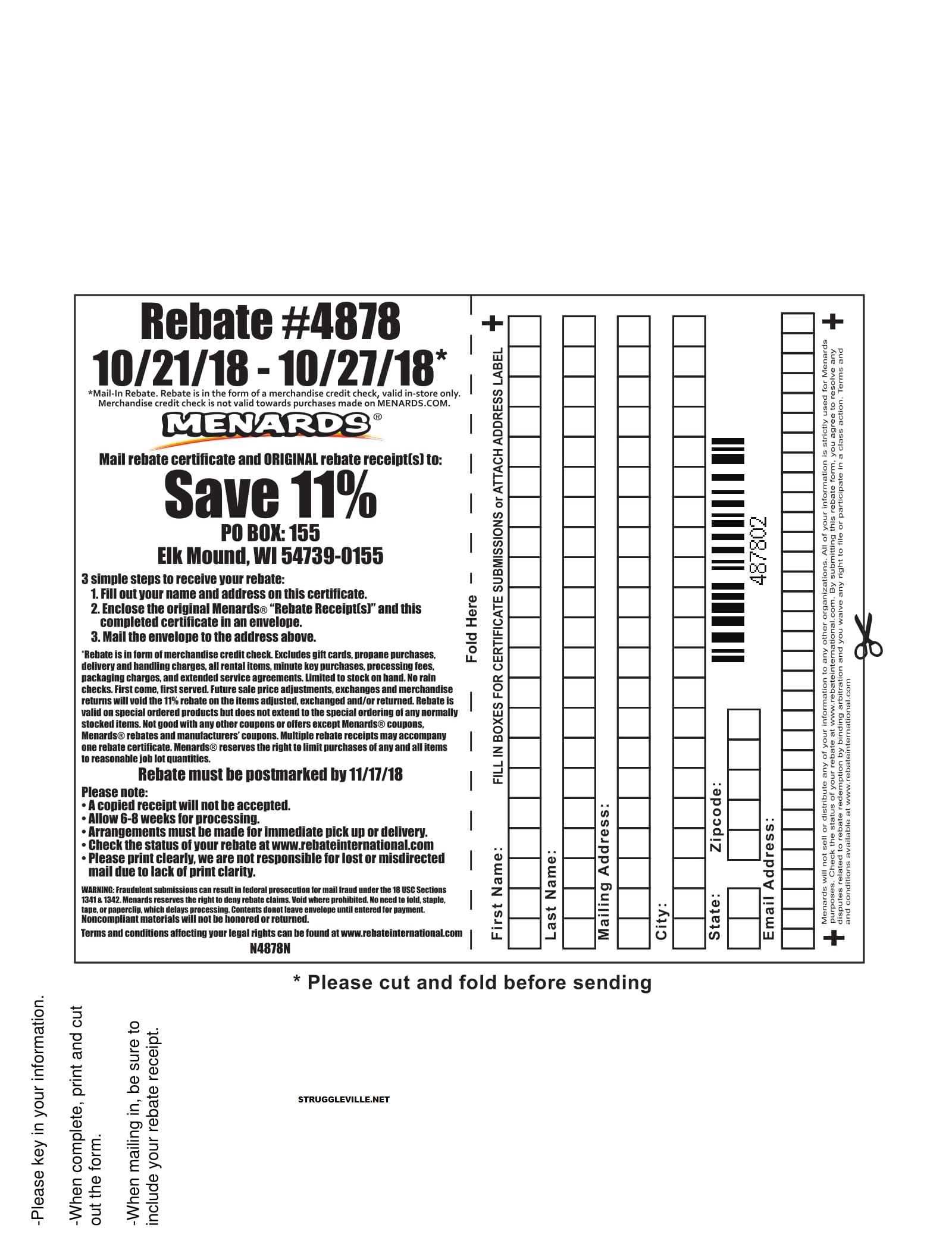 Menards 11% Rebate #4878 – Purchases 10/21/18 – 10/27/18
