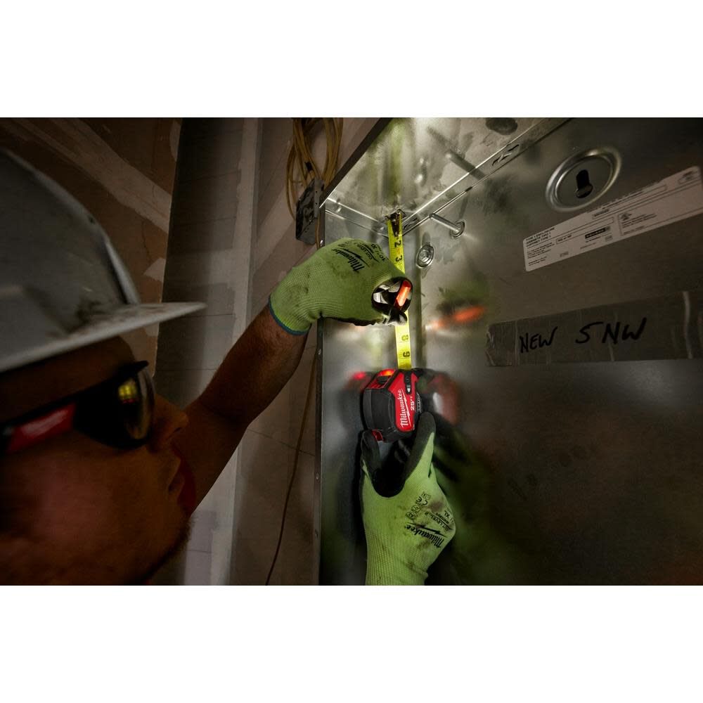The MILWAUKEE® 25ft Compact Wide Blade Magnetic Tape Measure with Rechargeable 100L Light is a top-notch tape measure that provides the brightest and clearest measuring in the industry. Its LED light, impact-resistant lens and frame, anti-tear coating, and magnetic hook make it a must-have for any contractor, builder, or DIY enthusiast. With its bright LED light, durable construction, and rechargeable battery, this tape measure is sure to become a go-to tool for all your measuring needs.
