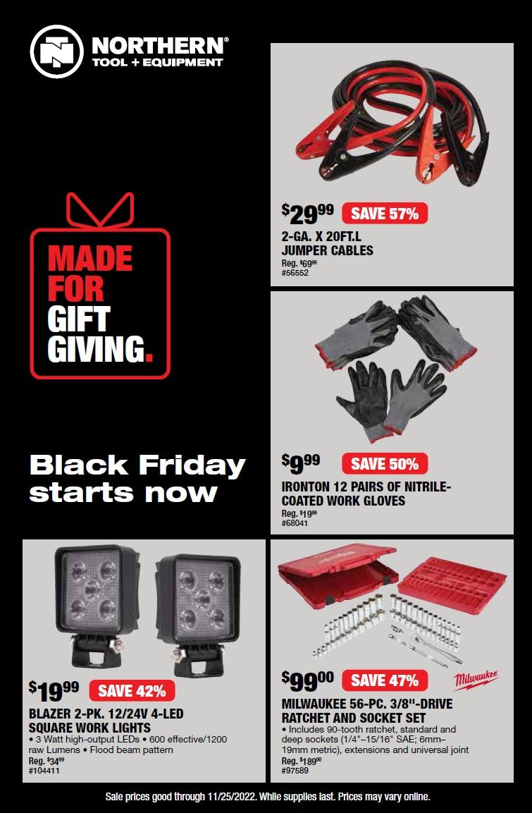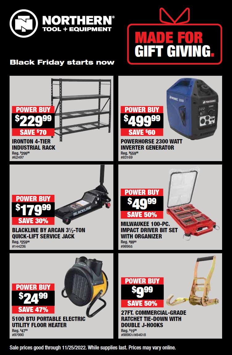 Northern Tool is one of the first retailers to release or “leak” their Black Friday ad. The ad states that the sale starts now and expires 11/25. If anything new comes out it will be added to the bottom of the scans on this page.