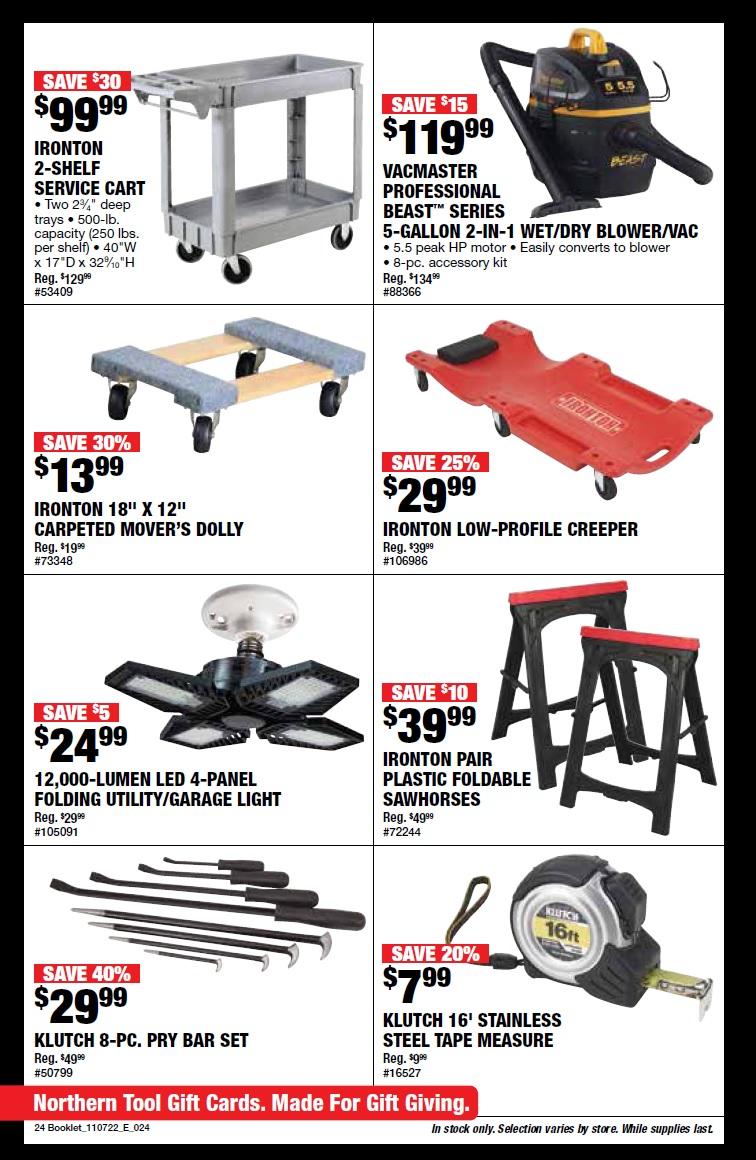 (Sometimes it is difficult to apply promo codes on the Northern Tool website. If you cannot get the promo code box to appear then after adding the items you want to purchase to your cart click the corresponding apply code link from the options above. This SHOULD apply the code, continue through checkout and before paying the total WILL update to the correct price.)