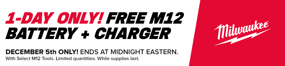TODAY ONLY at ToolNut when you buy select Milwaukee M12 bare tools you will get a Milwaukee M12 2ah starter kit for free! CLICK HERE to see a full list of tools eligible for this offer. The starter kit will be added to your cart automatically but you can check out the details of the kit HERE.