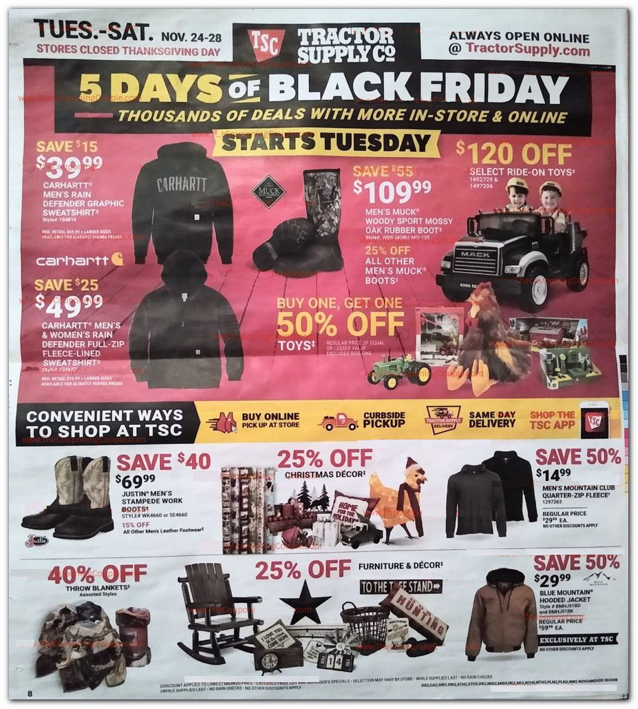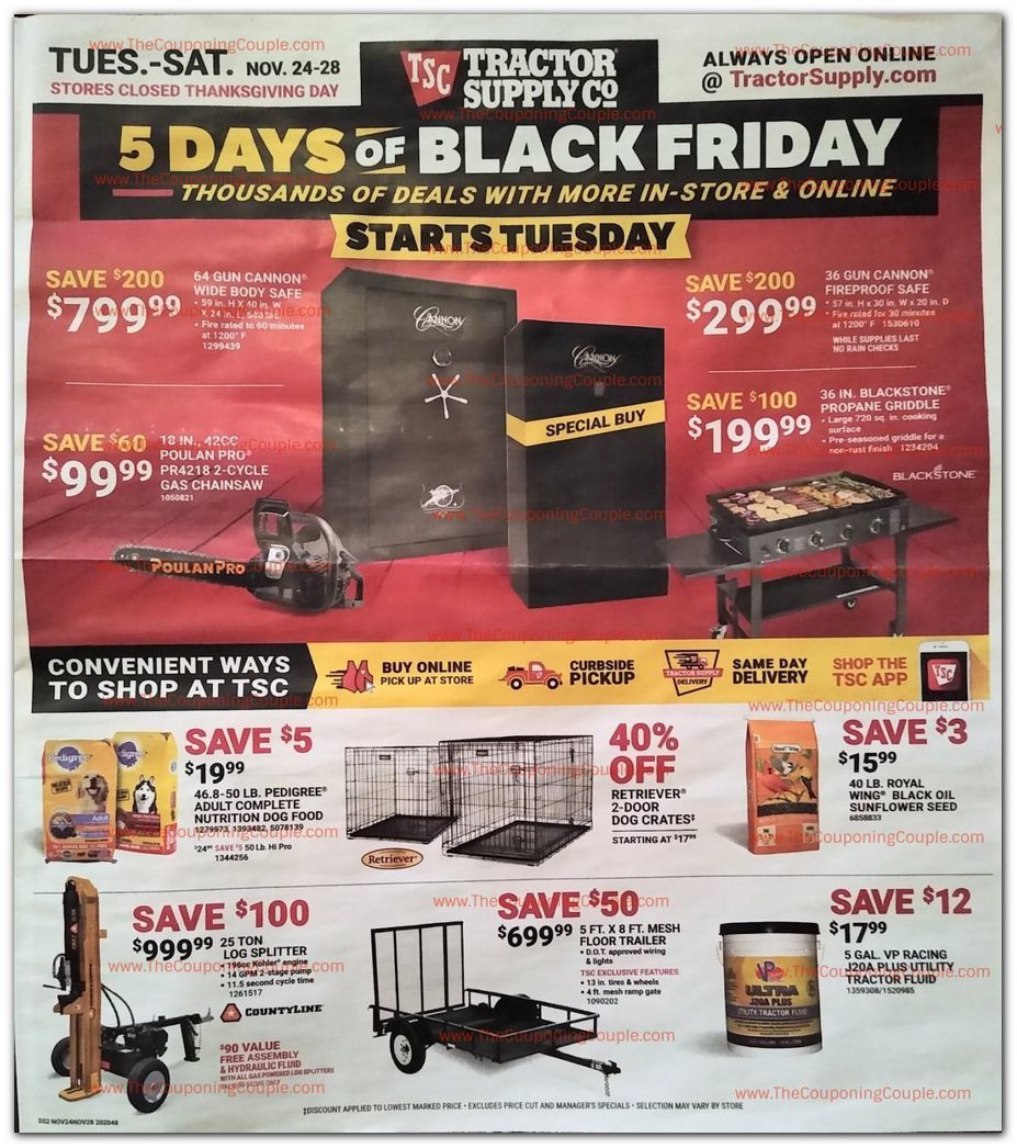 Like many retailers this year Tractor Supply is not having a traditional Black Friday sale. Below are scans of the ads that have been released so far. The ad states the prices are valid 11/24-11/28. We have seen Black Friday prices available before the official ad start from several other retailers this year, its worth checking prices if you see an item that interests you. If anything new comes out it will be added to the bottom of the scans on this page.