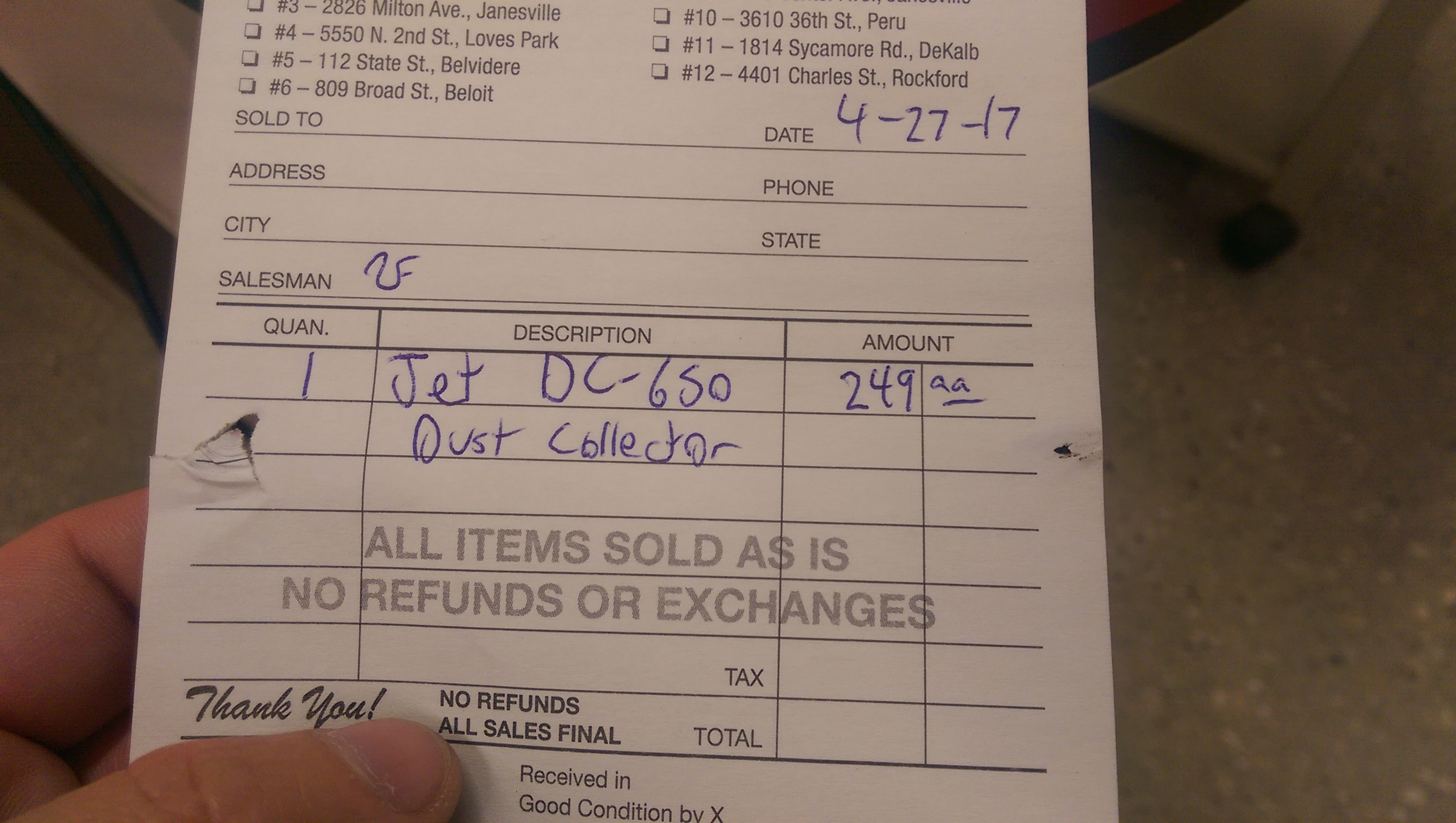 Jet Dust Collector – $249.99 (Comparable item on eBay)